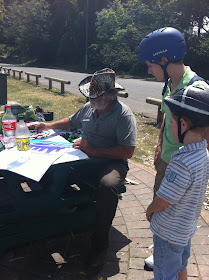 We found a shady spot near the kiosk to have our weekly 'Family Meeting'... where we share our feelings, grievances, amends etc. Here is little one seriously contemplating his role as 'Chairman' of the meeting this week. He loves being 'Chairman.